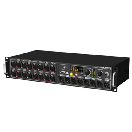 的数字SNAKE技术。 S16带有16个由MIDAS设计的数控可编程的遥控控制话放,都带48V幻象供电,跟X32台子上的完全一样。另外S16还可提供8个模拟平衡XLR输入和16个ADAT数字输出,两个MIDI输入和输出接口,两个AES60网络接口允许通过路由器或交换机来连接最多三台S16设备一起工作,也可通过ULTRANET接口来连接Behringer P16个人监听系统。
